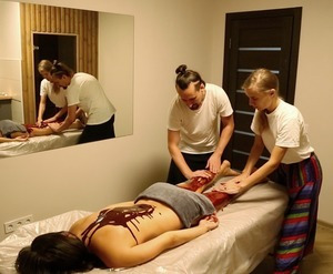 Масаж відбувається у приємній обстановці: звучить музика, горять свічки. Під час процедури використовуються ароматичні олії та аромалампа.